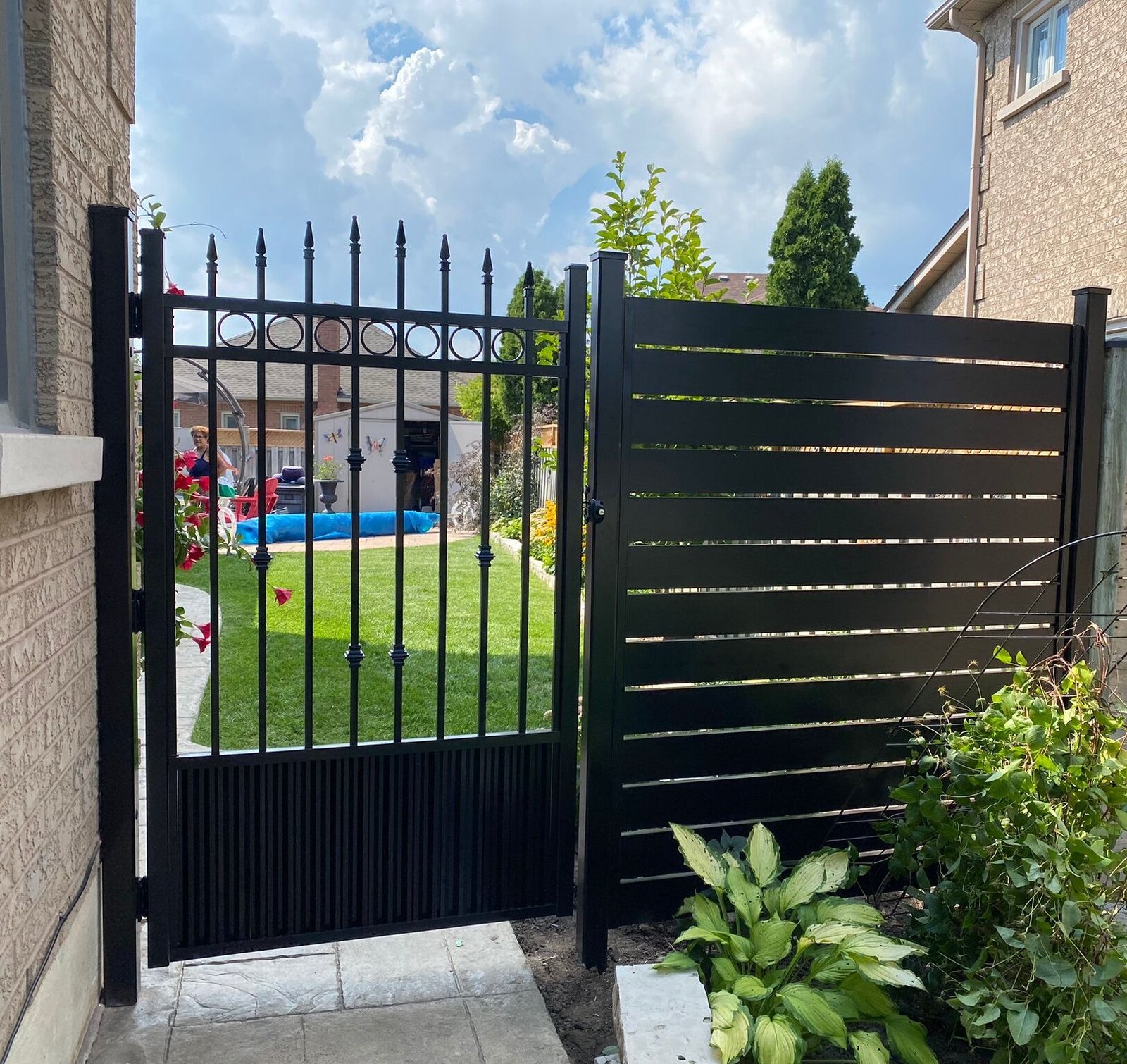 We offer custom aluminum gates at any sizes, with or without automation. See below automated picket gate recently installed: